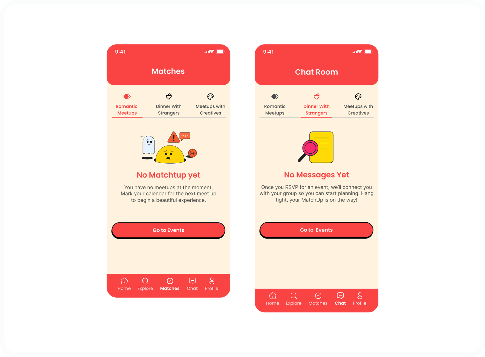 • Creating an approachable and welcoming experience that removes the pressure typically associated with social and networking events. A lighter, human centered tone helps reduce anxiety and makes participation feel more accessible, especially for users who feel overwhelmed by large or unstructured gatherings.