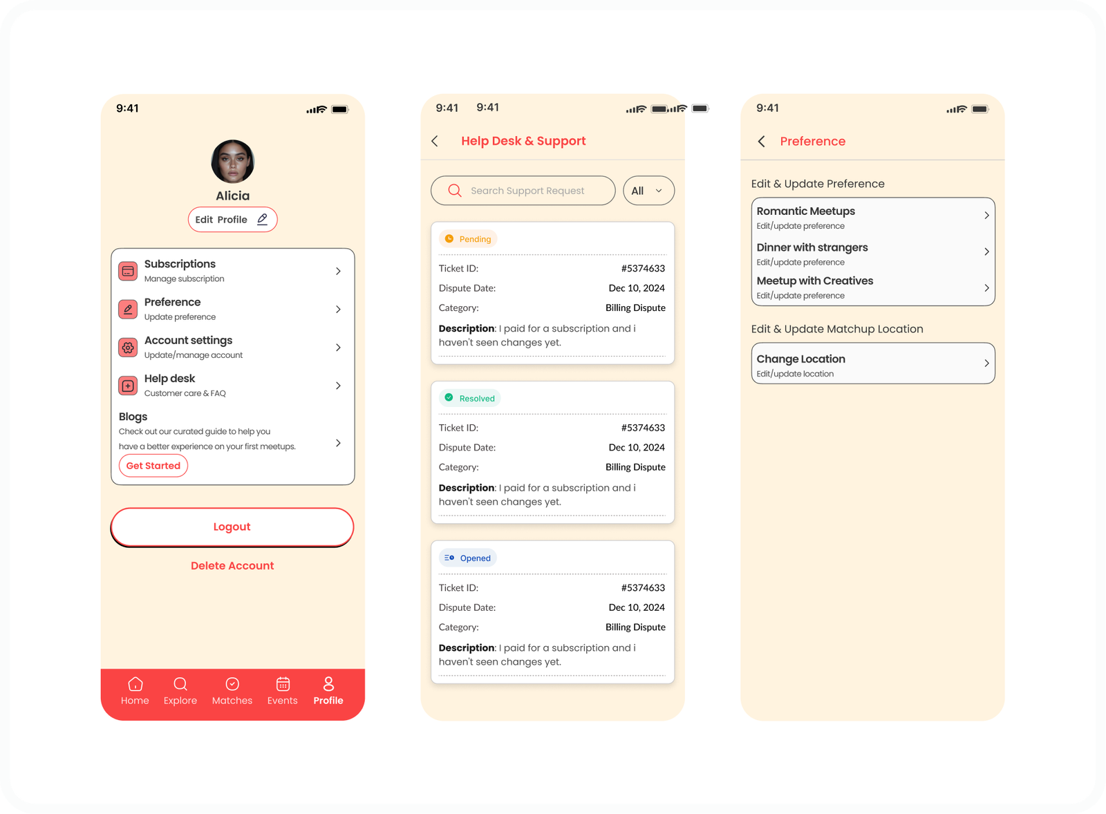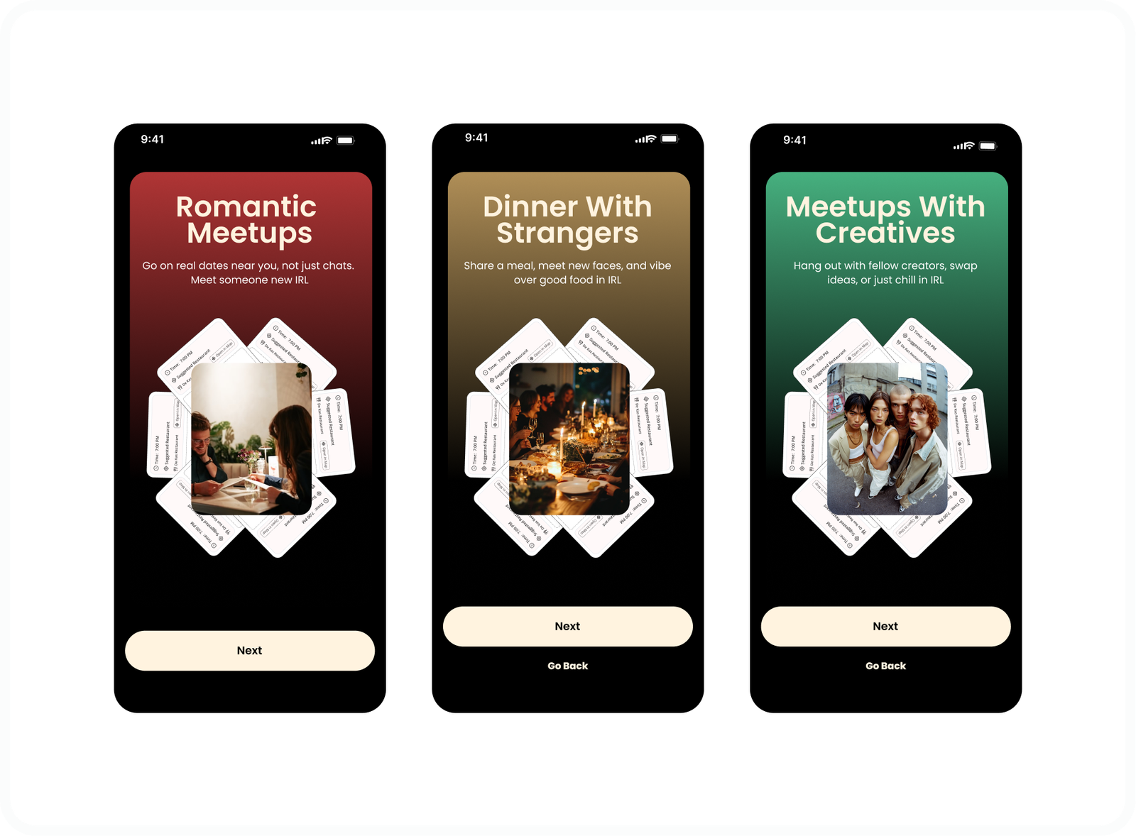 Over five months, I explored the problem space through user research, competitive analysis, and iterative design. The work shown here reflects approved product direction and design decisions made in collaboration with stakeholders during the pre launch phase, with the goal of translating digital intent into real world connection while prioritizing clarity, comfort, and emotional safety.