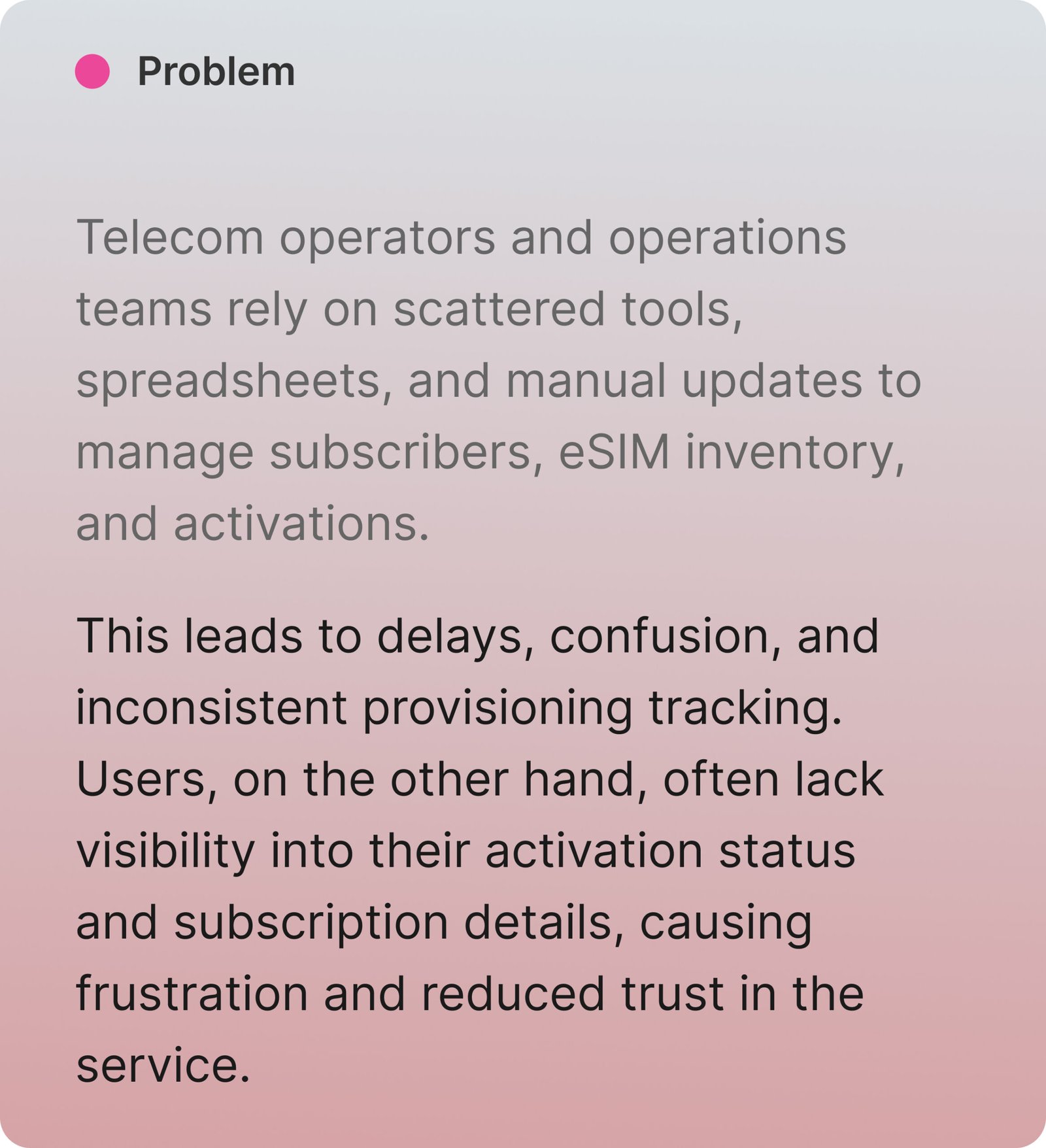 The goal of this concept is to demonstrate how a telecom management system can evolve from a task driven interface into a structured operational control platform that is scalable, transparent, and data informed.